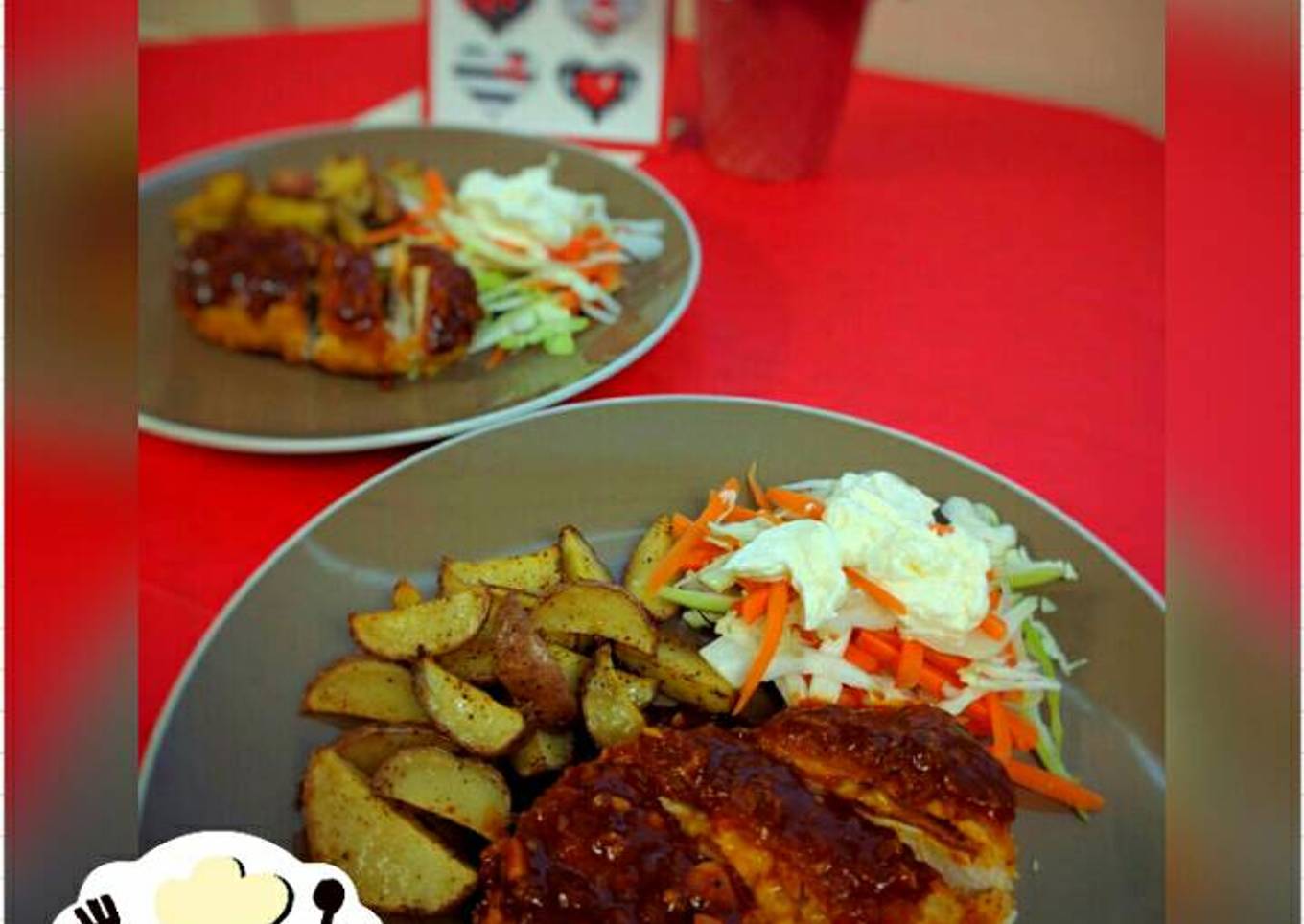 - 2 buah dada ayam fillet - 2 lembar smoke beef (saya 1, potong jd 2) - 2 lembar keju jenis mudah leleh (saya orange cheddar parut) - secukupnya garam dan merica - 1 butir telur + 2 sdm susu cair (kocok) - secukupnya tepung terigu (sekitar 3 sdm munjung) - secukupnya tepung roti - ������ black pepper sauce: - 2 sdm bawang bombai cincang - 1 siung bawang putih cincang halus - 1 sdt saus tiram - 2 sdm saus tomat - 2 sdm saus sambal - 1 sdm kecap manis - secukupnya kaldu bubuk tanpa msg (saya pakai dry rub) - secukupnya garam - secukupnya merica / lada hitam - secukupnya air (sekitar 2 sdm) - ������ pelengkap: - secukupnya kentang goreng / patato wedges - secukupnya salad + mayo